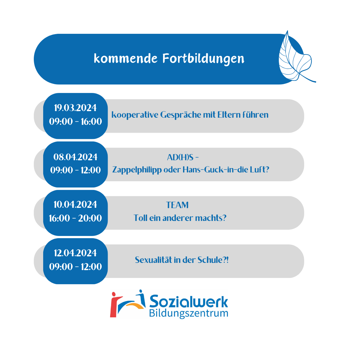 Wir freuen uns, dass Sie sich hierhergeklickt haben. Mit unseren Fortbildungen verfolgen wir das Ziel, Sie in Ihrer täglichen Arbeit zu unterstützen!